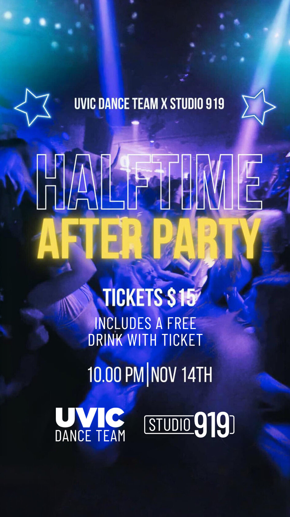 Tickets available here: https://victic.ca/tic/the-uvic-dance-team-halftime-after-party/