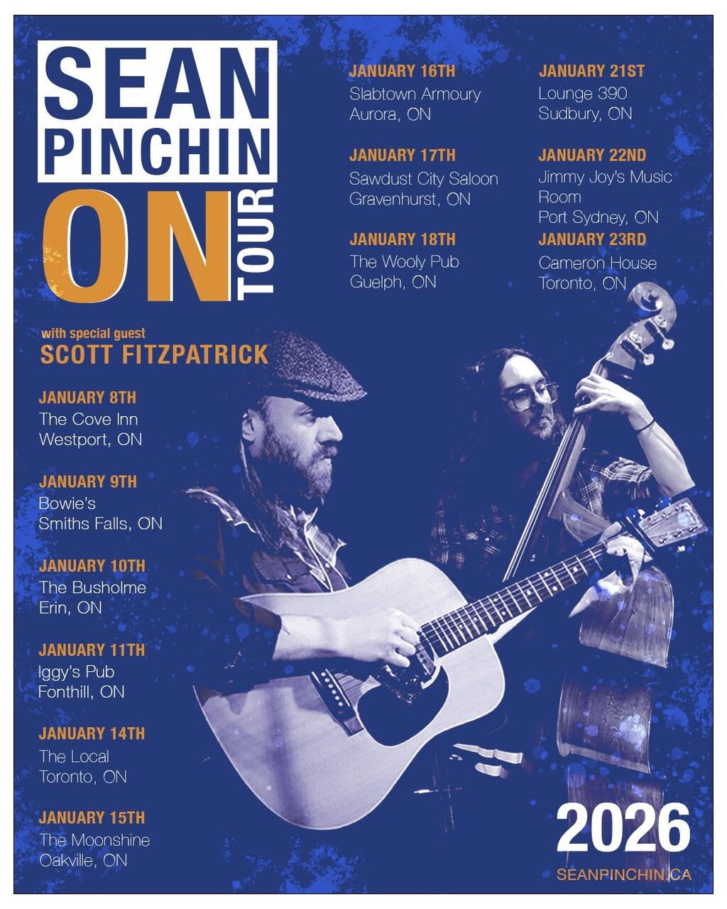 JUNO nominee and one of the most underrated, absolute monsters of the blues/folk slide-guitar, Edmonton’s Sean Pinchin will return as part of his east coast tour with long time bass partner Scott Fitzpatrick to The Cove Inn on Thursday, January 8th, 2026 from 6-9pm.