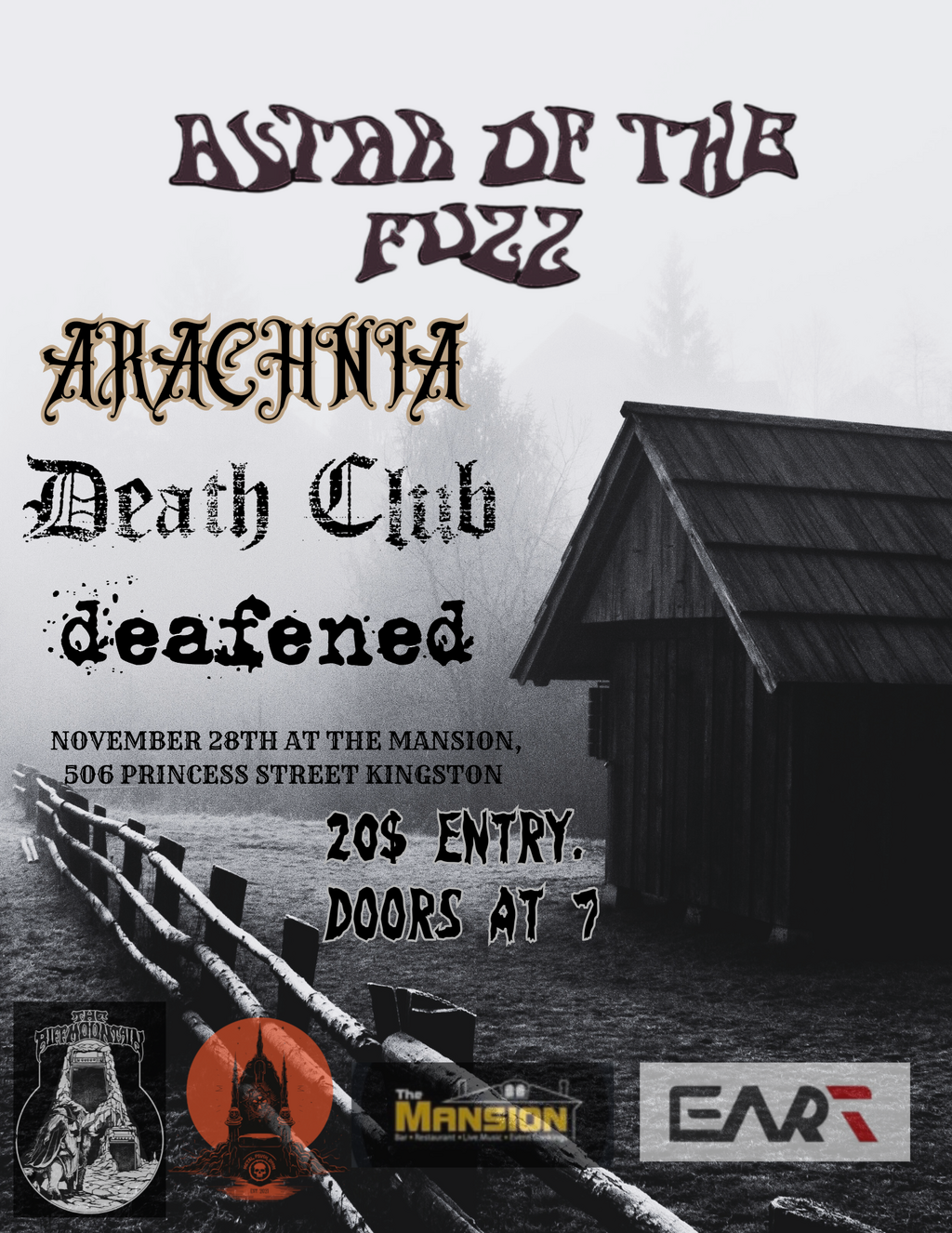 We are stoked to have Arachnia join the Eart Guitars Roster and are celebrating with a stacked lineup featuring Altar of the Fuzz (Ottawa), Death Club (Southern Ontario), Deafened (Toronto)