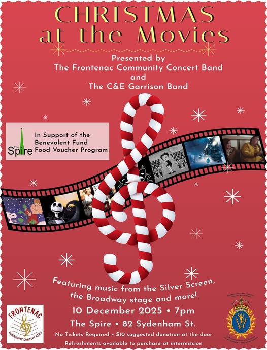 πβ¨ Join us for Christmas at the Movies! Enjoy festive favourites performed by the Frontenac Community Concert Band and the C&E Garrison Band in support of the Sydenham Street United Benevolent Fund Food Voucher Program.