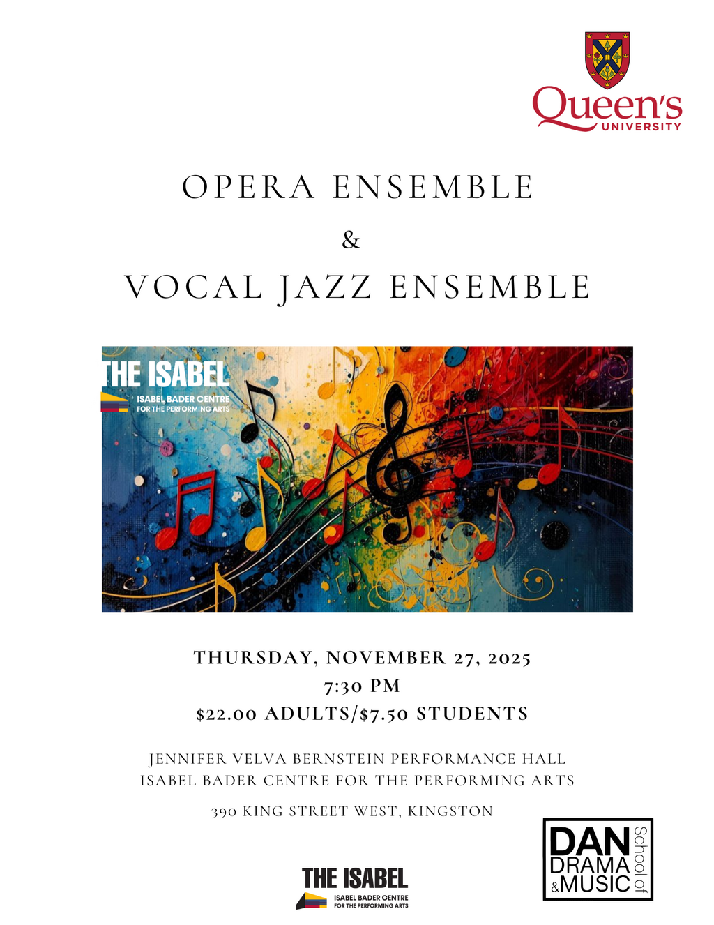 Join us for an evening of Vocal Jazz standard along with opera excerpts featuring students from the DAN School of Drama and Music at Queen's University.