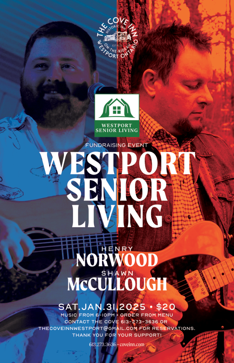 A fundraiser for Westport Senior Living of Westport, ON! Neighbours helping neighbours age safely and well at home in Westport, Ontario and surrounding area. Music by local classic country music heroes and masters, Henry Norwood and Shawn McCullough of Westport, naturally! Come and support a great cause that helps promote a great quality of life in the Westport community! Saturday, January 31st, 2026 from 6-10pm. $20 cover goes to the charity and music! There will be a 50/50 draw with some other fundraiser activity. Guests can feel free to order whatever food they wish from the menu.