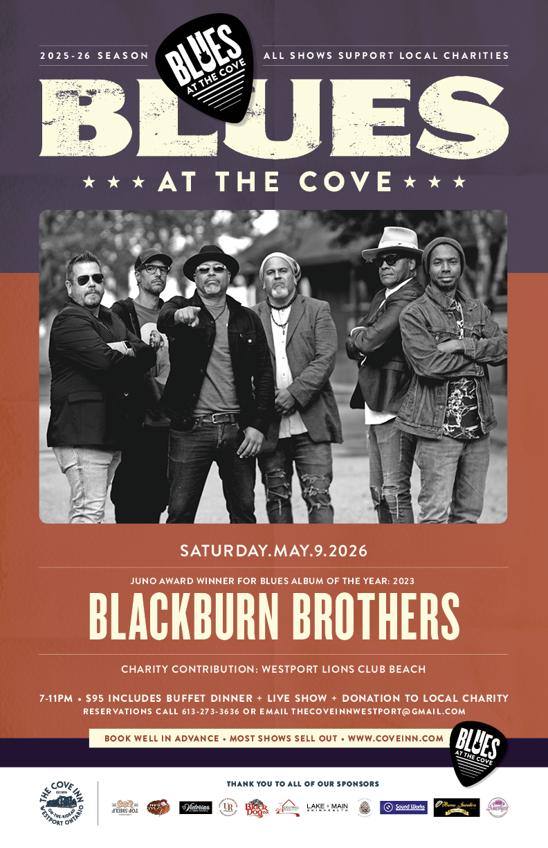 The continuously popular Blues at The Cove series returns to The Cove Inn with a return performance of their trademark, high-powered “Soul funk ‘n blues” before they head out on their European tour by the Blackburn Brothers from Toronto!