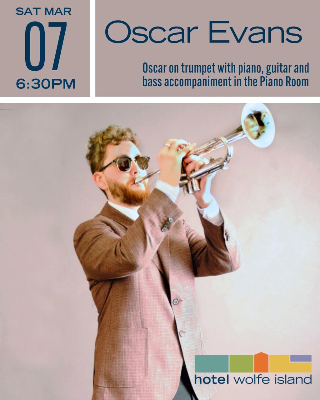 Oscar Evans will be bringing a quartet of piano, guitar, and bass – all with Oscar taking the lead on trumpet for a special performance in the Piano Room on March 7. Oscar has selected a wide range of jazz standards, some of which he has recorded and released, to share with fans of classic jazz, swinging trumpet melodies, and smooth and sophisticated backing from some of Kingston’s great local jazz talent.