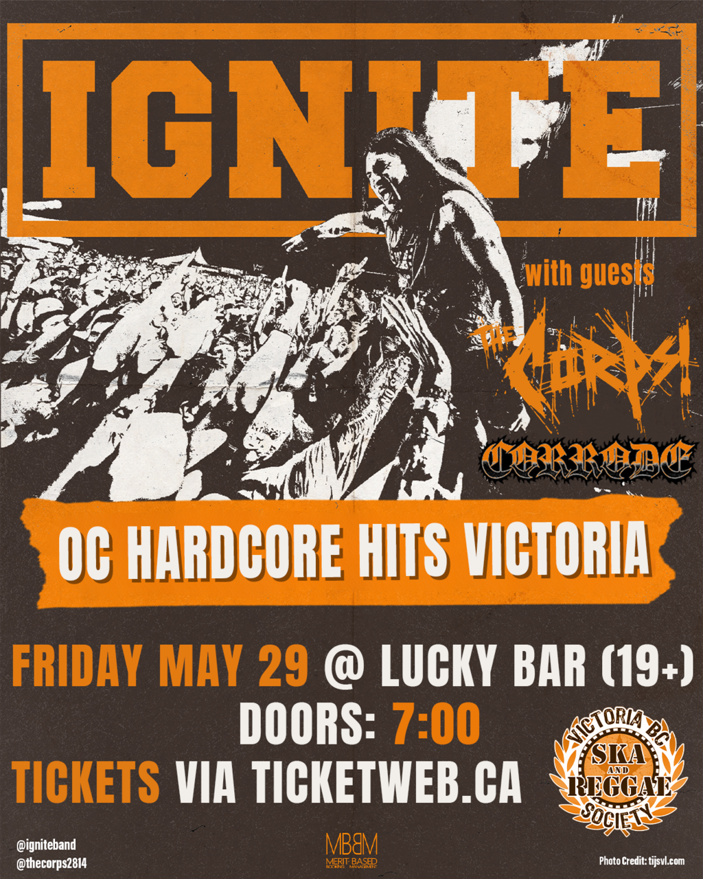 The Victoria Ska & Reggae Society is honoured to keep the punk vibes going this spring with another eclectic evening of heavy sounds featuring Ignite, The Corps, and Corrode.