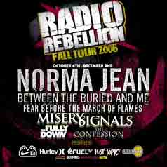A Christian metal-core quintet whose members have “BBQ” tattooed on their lips, Norma Jean is preparing a fresh assault on the ears and minds of metal fans with the release of its third album, Redeemer. The follow-up to the Atlanta, GA group’s successful 2005 O’ God, the Aftermath (#62 on the Billboard album chart), the disc was overseen by legendary producer Ross Robinson. Norma Jean’s music has been compared to that of Botch, Coalesce, and Converge, and its debut, Bless the Martyr and Kiss the Child, was hailed by fans of the genre as one of the most devastating hardcore albums of the last decade. The band has just finished touring with Ozzfest and is about to embark on the Radio Rebellion Tour.