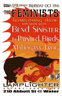 . Thursday, Oct 19th IMU & CiTR present The Feminists Homecoming show w/ Bend Sinister, The Painted Birds + Mahogany Frog @ The LAMPLIGHTER, 210 Abbott Street . Doors 8pm / $10