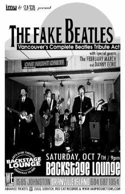 . THIS SATURDAY! Oct 7th IMU & CiTR present The FAKE BEATLES (Beatles Tribute Band) with special guests The February March & Danny Echo @ The BACKSTAGE LOUNGE, 1585 Johnston Street, Granville Island . 9pm / $10 . Advance tickets at Zulu, Scratch & Red Cat Records