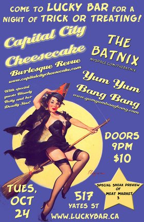 TRICK OR TREAT!!! Vic's premiere Burlesque Revue, Capital City Cheesecake, is joined by the newest troupe on the block, Bloody Betty and her Deadly Sins, plus Miss Via Rose (from Vancouver), for a Halloween-themed Burlesque show! Special musical guests YumYumBangBang and The Batnix. www.capitalcitycheesecake.com