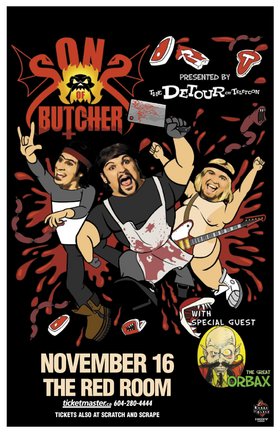 Meat the Sons of Butcher. Brothers Sol and Ricky Butcher and buddy Doug Borski are stars of the hit Teletoon series Sons of Butcher. They’re also a live and recording band that slices and dices all its favourite hard rock influences into a potent cold plate. Last year’s self-titled debut was distributed by Sonic Unyon, and the disc proves the group’s mettle as far as rock credentials go with songs like “F*** the S***”. Appearances in Ontario and at the Halifax Pop Explosion followed. A second album, Meatlantis, along with the single “Action Reaction”, is out this fall.
