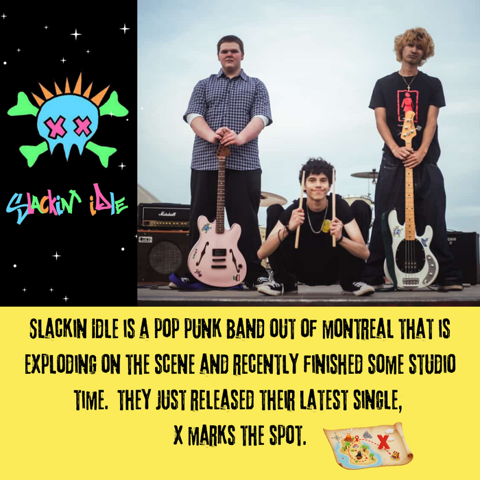 We are a skate/pop punk band based out of Montreal, Quebec, Canada that shares a love for bands like Blink-182, Sum 41, Green Day, NOFX, and many more. Slackin' Idle started covering songs from all those bands, and no too long after, started writing songs of our own! With no intention of stopping, and no shortage of tom foolery and shenanigans, Lennon O'Donnell, Michel Balazic Ortiz, and Nine McIntyre will continue to find the fun in life and in music, and will hopefully share it with as many people as we can!!